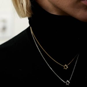 Jade Trau is a New York based jewelry designer and a fifth generation diamondtaire with over 20 years in the industry. Jade’s pieces are classic gold and diamond with a twist. She is a believer that the more jewelry pieces you layer, the more casual the look becomes. Her pieces are sparkly and thoughtfully unique, making her pieces one of our most popular lines in the store.