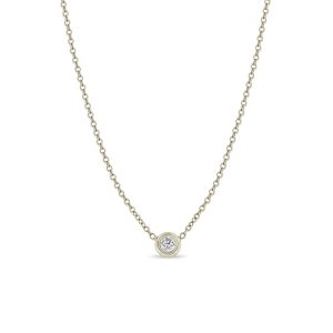 14K Extra Small Curb Chain Diamond Bezel Circle Necklace 18″