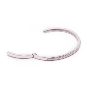 Hinged Shared Prong Cuff Bracelet with Diamonds in 14K White Gold