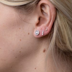 Round Diamond Pave Halo Stud Earrings in 14K White Gold