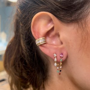 18k gold pave single diamond huggie with pear diamond drop