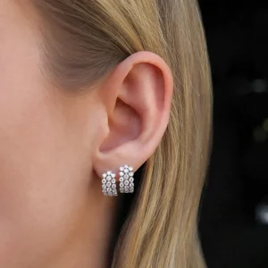 Triple the sparkle, timelessly refined. The 3 Row Diamond Bezel Huggies in 18K Yellow Gold by M. Flynn feature three rows of bezel-set diamonds that hug the ear with brilliance. Crafted in rich 18K yellow gold, these statement huggies offer bold shine in a clean, modern silhouette—perfect for elevating your everyday look or adding polish to a dressed-up moment.