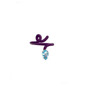 Baby Vine ring with deep purple enamel and drop cut blue topaz.