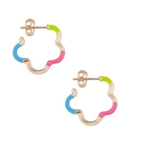 Mini Pink Green and Blue Enamel Earrings in 9K Yellow Gold