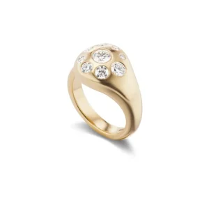 Pyramid Ring with Bezel Set White Diamonds in 18K Yellow Gold