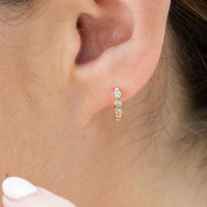 Our best-selling Heirloom Earrings features 5 full-cut diamonds per earring, set in 14k yellow gold. Erin originally came up with the Heirloom Collection when we worked with her to redesign some family jewelry into something more current and easy-to-wear.