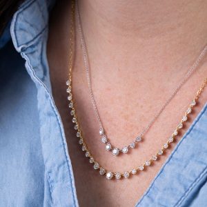 The Small Penelope Necklace Features 7 Graduating Round Brilliant-Cut Diamonds. This Smaller Version of a Tennis Necklace Is The Perfect Layering Piece Or Can Be Worn Alone For a Classic and Clean Diamond Look.