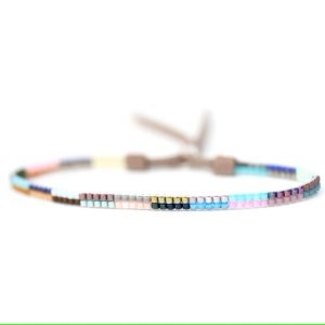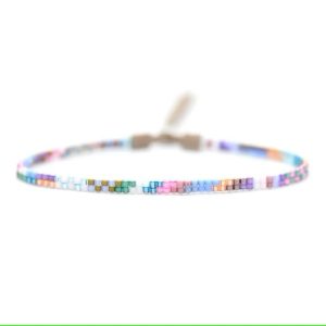 The Hana Mini Bracelet blends delicate design with vibrant detail. Handwoven with precision, it features a colorful pattern inspired by natural tones, finished with a sterling silver clasp and tassel ends. At just 1/8″ wide, this bracelet is perfect for stacking or adding a subtle splash of color to your everyday look.