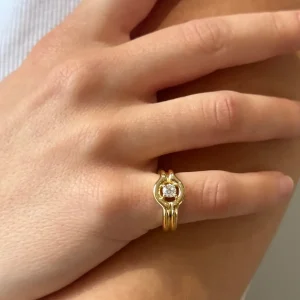 The Honey Ring by Melissa Kaye features a single diamond set in a yellow gold band. This ring is a timeless classic with a twist, and is so easy to wear!