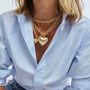 A bold take on a classic. Roxanne Assoulin’s Puffy Heart Necklace makes a statement with its glossy gold finish and oversized charm. Wear it solo or layer it up—it’s a feel-good piece with major heart.