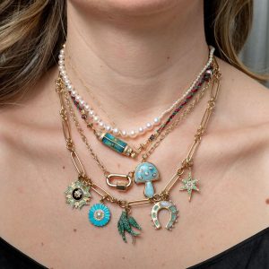Pretty, feminine, and perfect. We have long admired Sophie’s modern take on pearls. This is a wedding earring you would wear long after the wedding. A pearl necklace that you feel young in. We’ve seen so many pearl trends, but Sophie’s are the real deal.