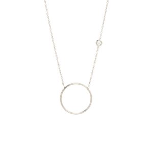 Sleek and timeless, the Medium Circle Necklace with Floating Diamond is crafted in luminous white gold for effortless everyday elegance. A polished open circle pendant frames a single floating diamond, creating a delicate sense of movement and light. Suspended from a refined white gold chain, this minimalist diamond necklace is perfect worn alone or layered with your favorite chains. Modern yet classic, it’s a versatile piece designed to transition seamlessly from day to night.