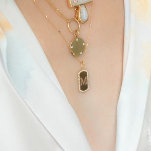Dog Tag with Diamond Pave Border Engraved Letter M