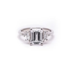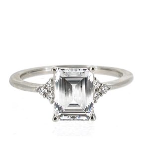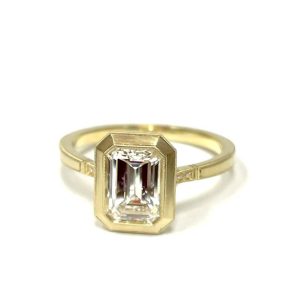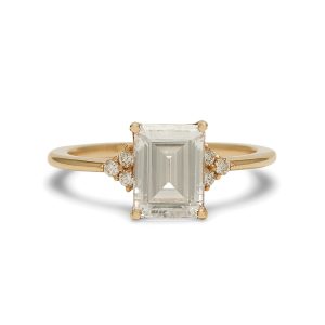 The Evelyn Emerald Cut Engagement Ring with Epaulette Side Stones, a part of M. Flynn’s engagement ring collection, is made-to-order in 14K or Platinum. Let us help you find the perfect center stone to create the ring of your dreams. M. Flynn works with natural diamonds.