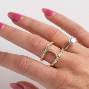 The Margaret Engagement Ring, a part of M. Flynn’s engagement ring collection, is made-to-order in 14K or Platinum. Let us help you find the perfect center stone to create the ring of your dreams. M. Flynn works with natural and lab created diamonds.