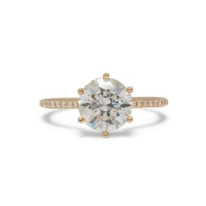 A delicate engagement ring with 6-prongs and a unique hidden halo in 14K Yellow Gold.