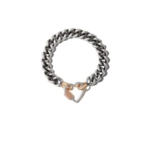 The Mixed Up Half & Half Chain is ½  Sterling Silver Not So Heavy Curb & ½ 14K Gold Rolo Chain is Perfect for Holding Marla Aaron Lock Charms.