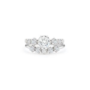 The Catherine 5 Stone Band Features a Curved Silhouette That Stacks Well Against The Center Stone Of An Engagement Ring. We Recommend This Band Paired With The Jade Trau Catherine Engagement Ring Setting.