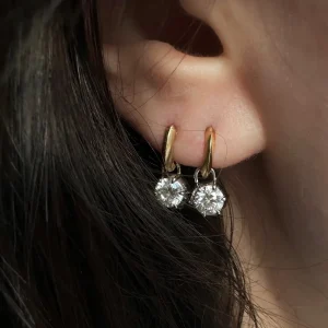 The Catherine Huggies Are The Perfect Everyday Diamond Huggies Featuring Five Brilliant-Cut Diamonds In 6 Prong Settings. These Huggies Look Great Anywhere On The Ear and Give The Perfect Amount of Sparkle.