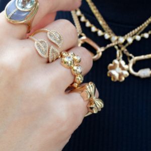 The Audrey Diamond Wrap Ring by Melissa Kaye features gold bubble circles with diamonds centers. We love the chunky gold look of this ring combined with beautiful diamond sparkle. Wear this as your right hand statement ring!