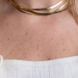 Our medium size herringbone chain necklace in 14k yellow gold