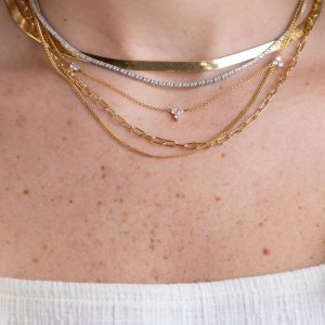 We absolutely love the shimmer of this chain. It looks elegant worn alone, but also adds shine to your layered necklaces.
