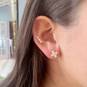 Our best-selling Heirloom Earrings features 5 full-cut diamonds per earring, set in 14k yellow gold. Erin originally came up with the Heirloom Collection when we worked with her to redesign some family jewelry into something more current and easy-to-wear.