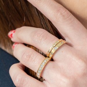 The Heirloom is a part of M. Flynn’s collaboration with interior designer and blogger, Erin Gates. The Heirloom Stacking Rings from The GATES Collection by M. Flynn are available in thin and medium in 14k yellow, white, or rose gold. Wear this simple and timeless band alone or together for a fun stack.