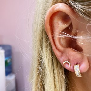 The Heirloom Huggies from The GATES Collection by M. Flynn features 5 full-cut diamonds per earring, set in 14k yellow gold.