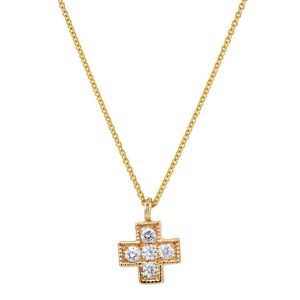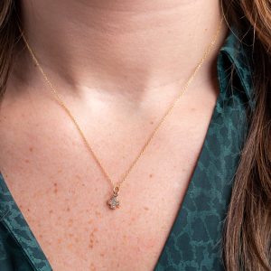 The Les Points Ball Locket from The GATES Collection by M. Flynn features .15tcw diamonds set around an 18K yellow gold ball locket on an 18″ 14K yellow gold chain. Choose between a gold heart or clover charm to put inside the locket.