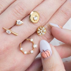 The Kismet Bar Studs Feature Three Graduating Size Round Brilliant-Cut Diamonds For a Subtle Sparkle Look. These Can Be Worn Straight Down or Climbing On The Lobes and Look Great On a Cartilage Piercing.