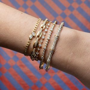 The Zen Diamond Bangle by Kwiat features a bamboo silhouette covered in pave diamonds. Stack this bangle with your diamond tennis bracelet for an everyday bracelet stack.