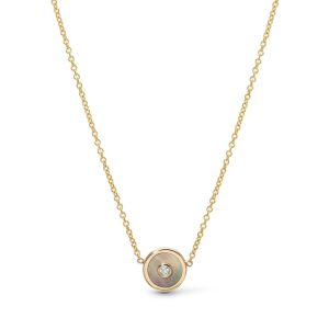 Mother of pearl inlay set in 14k yellow gold with 0.02ct white diamond.