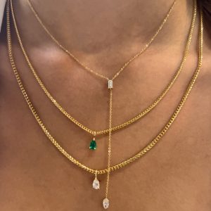 We love the way the Franco chain shines and catches the light complementing a beautiful pear cut diamond. This necklace offers a simple, luxurious look!