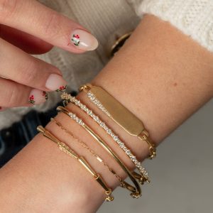 The Lola Needle Linked Bracelet is an edgy, comfortable bracelet that stacks well with bangles or tennis bracelets. This is the perfect gift for someone who has the needle earrings or is a MK fan!