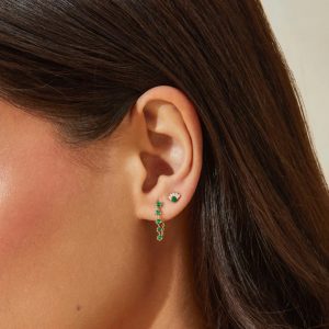 Emerald chain stud earring in 14k yellow gold