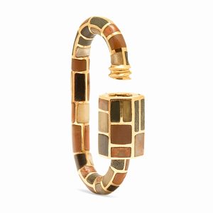 Add a vibrant pop of color to your jewelry collection with the Stoned Chubby Medium Lock, featuring dazzling pink and orange sapphires. This stunning piece combines bold design with a playful touch, showcasing expertly set sapphires that catch the light beautifully. Crafted for versatility, this lock can be worn as a statement pendant, charm, or clasp, allowing you to personalize your style effortlessly.