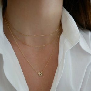 Dainty Diamond Rose Necklace in 14K Yellow Gold