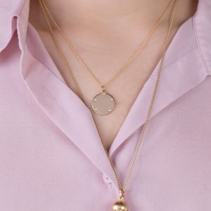 A part The GATES Collection by M. Flynn, theLes Points Charm features 5 diamonds spaced around a 16mm round 14K gold disc. Wear it alone or stack with multiple charms. Chain Sold Separately. Custom hand engraving available.