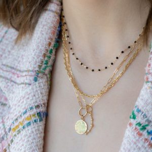 The Mini Gigi Eye necklace by Gigi Clozeau is a playful yet elegant reminder of our joyous journey through life. This striking piece features 18 carat gold, elegant petite resin pearls and a whimsical yet sophisticated design