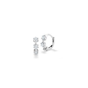The Kismet 3-Stone Huggies Are The Perfect Addition Of Subtle Sparkle That Can Be Worn Anywhere On The Ear. Featuring 3 Round Brilliant-Cut Diamonds On Each, These Huggies Offer a Full Diamond Look Even On Your Smallest Jewelry Piece.