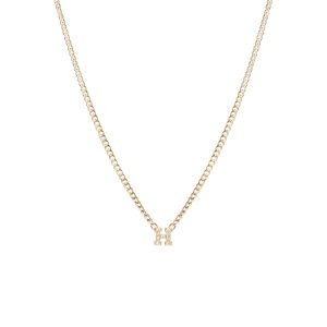 14k gold single letter necklace covered with white pave diamonds on x-small curb chain