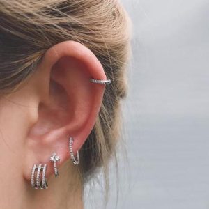 14k gold huggie hoops with 3 graduated prong set diamonds
