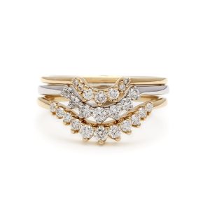 This gently curved band accentuates the contour of almost any engagement ring while incorporating the beauty of a classic commitment band. This band has a very versatile shape that can be worn as a perfect match to the Rosette or Bea, as a stand alone band, or stacked with multiple rings.