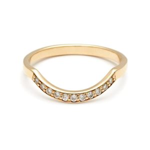 This gently curved band accentuates the contour of almost any engagement ring while incorporating the beauty of a classic commitment band. This band has a very versatile shape that can be worn as a perfect match to the Rosette, Bea, as a stand-alone band, or stacked with multiple rings.