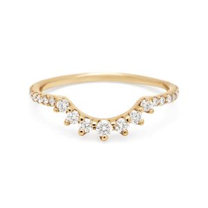 The Tiara Curve band consists of eleven, graduating prong set diamonds and fits the contour of almost any engagement ring. Its graceful curve makes it a versatile Commitment Band that perfectly matches Anna Sheffield’s Bea series many silhouettes. The Tiara Curve can be worn singly or stacked with multiple rings of its shape and can be made in all gold and diamond colors.