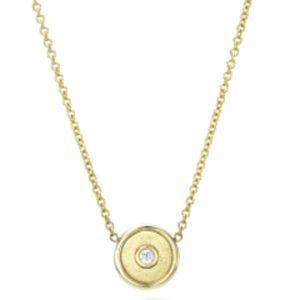 Sandblasted gold set in 14k yellow gold with 0.03ct white diamond.