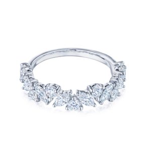 The Round and Marquise Diamond Band by Kwiat is a mixed-cut diamond band offering unique and extraordinary sparkle. We love this unique silhouette for a right hand right or alongside a round brilliant engagement ring.
