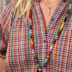 We love the mixed pattern in this rectangle chain. Wear it alone or layer it with other necklaces.