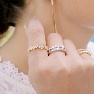Eternity bands, curved bands, gold bands, and more! Shop our selection of wedding bands below or text us to learn more about getting something custom at 617-292-0079